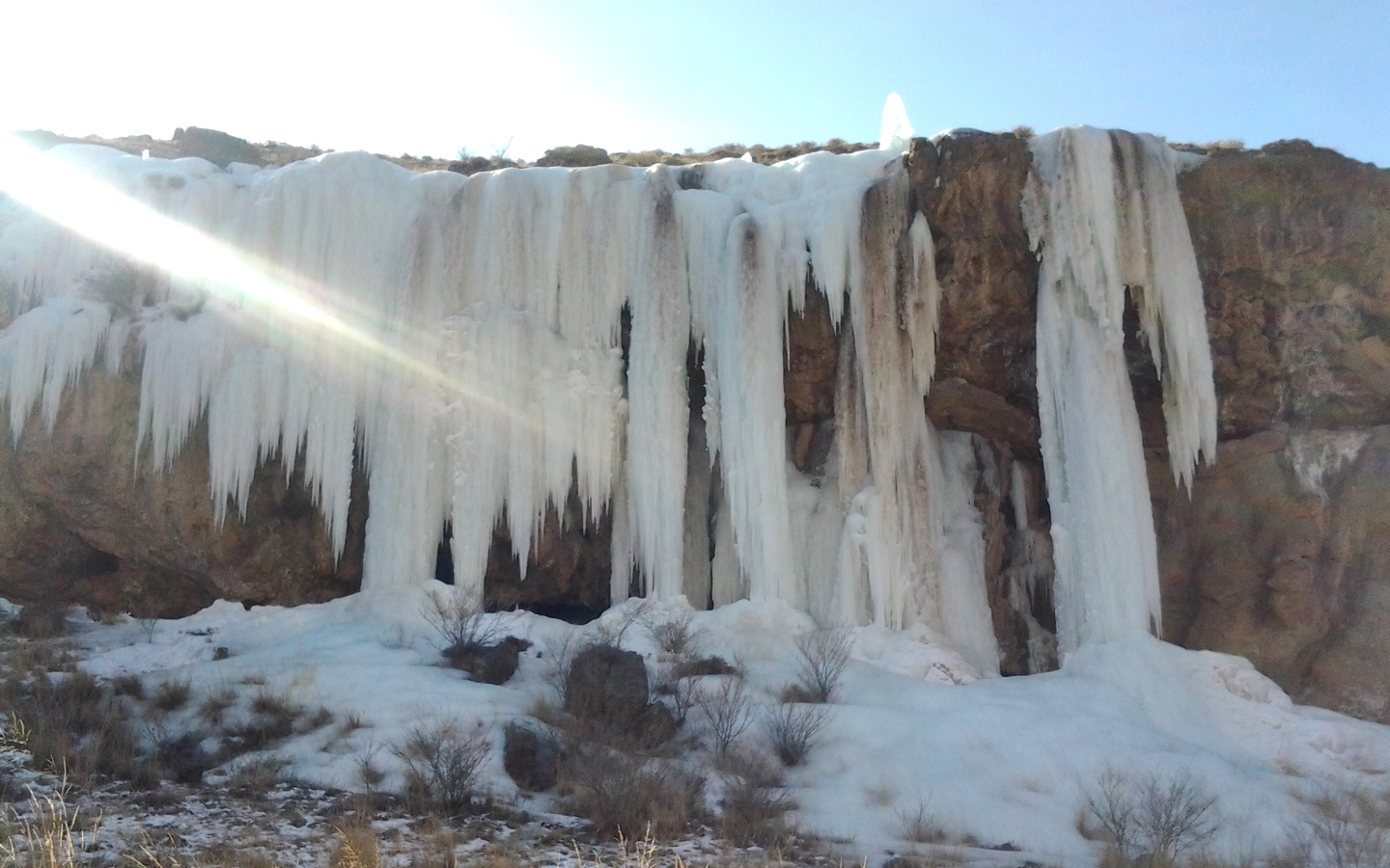 This frozen waterfall must have been a rare sight, since my hosts got really excited about it and stopped the car to take pictures.